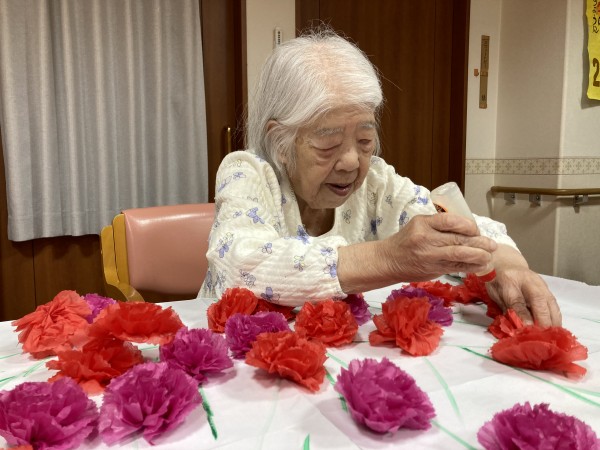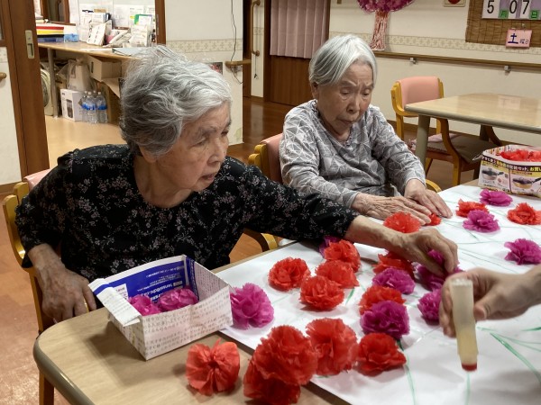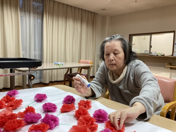利用者様の皆さん小さく細かい作業でしたが一枚一枚花びらを広げて下さったり、ノリでくっつけてくれました!(^^)!