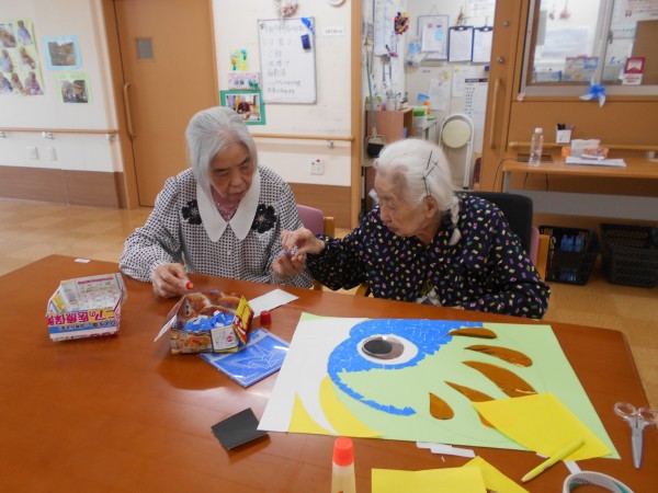 折り紙をちぎってのり付けをする方と、折り紙を貼る方といいチームワークをみせておられました(*^^)v