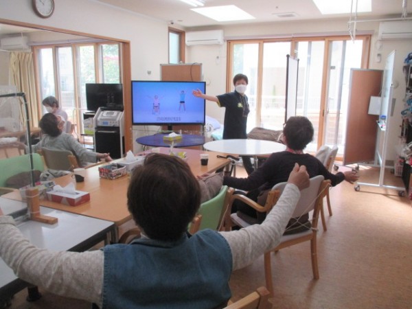 今日は体操の先生来るんでしょーー楽しみだわーー