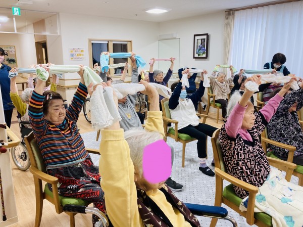 本日はリモート運動教室のタオル体操です。