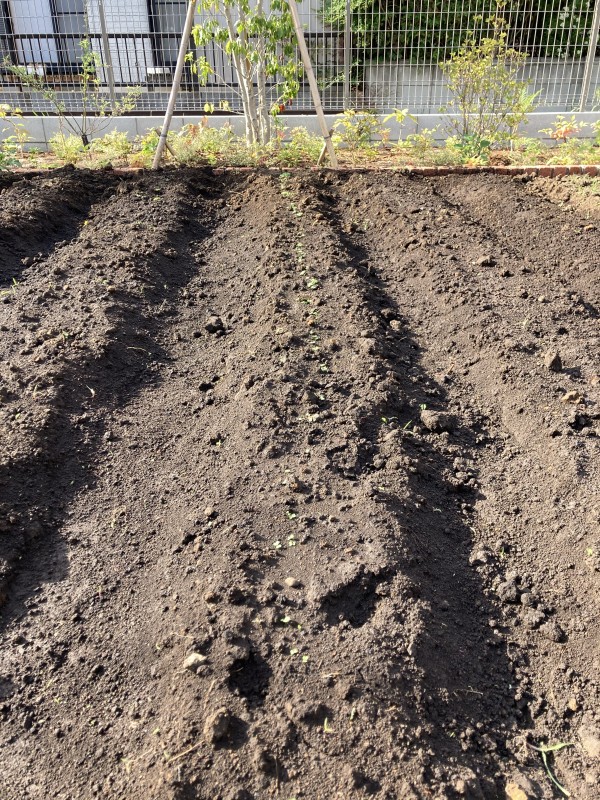 先日植えたばかりのカブの種。畑に行ってみると小さな芽が出ていました!