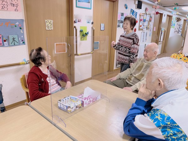 何やらフロアから楽しそうな会話が聞こえ、ケアスタッフも交ぜてもらいました。