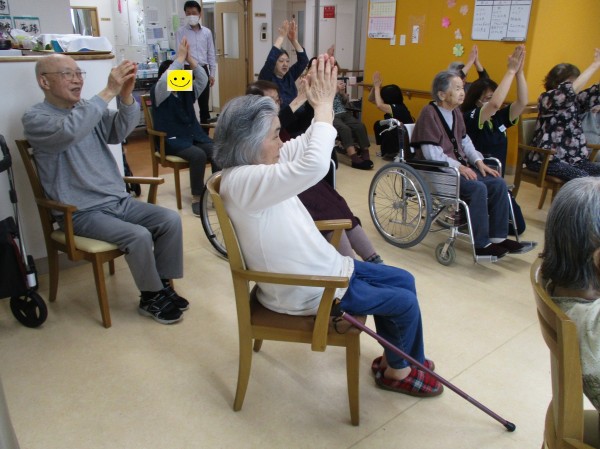 ご利用者の皆様は、それぞれできる範囲で手を上げたり、足を上げたり...