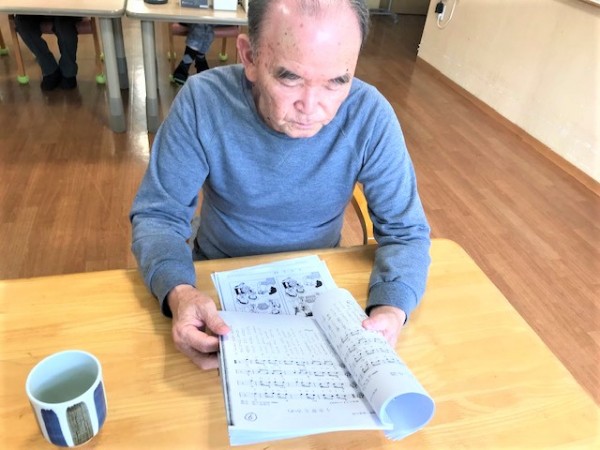 昨日の1階レクレーションは『小学唱歌』歌集を用意しました。