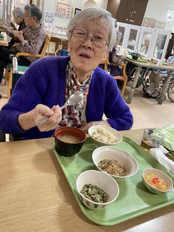 「季節の変わりご飯」を召し上がる1階ご利用者様!