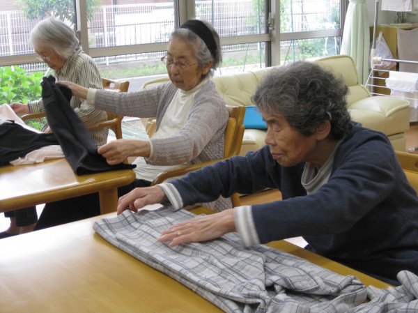 こんにちは!グループホームみんなの家・あきがせの介護ブログです!よろしくお願いいたします。日課である洗濯物を畳んでくださっているご様子をお知らせいたします!!