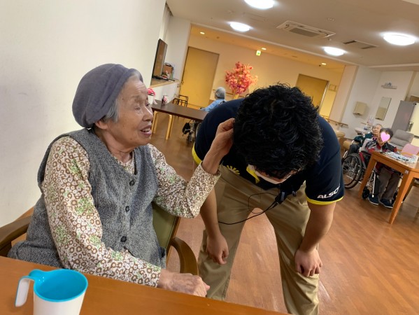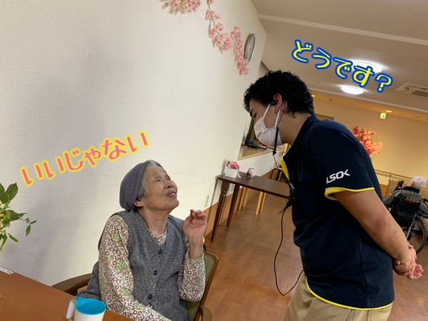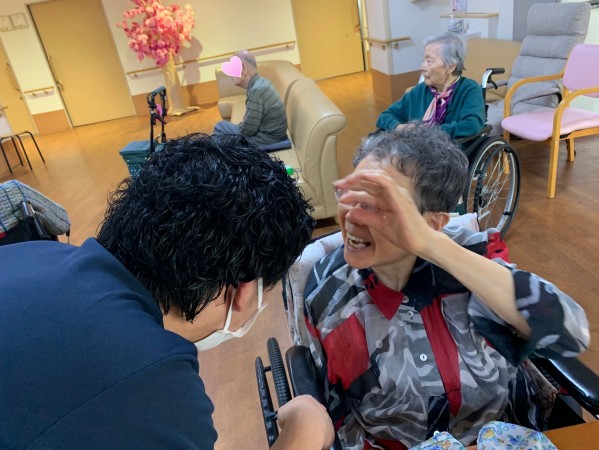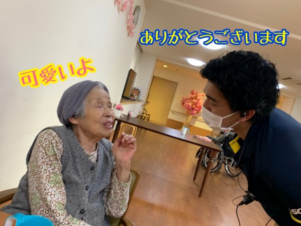 人懐っこい門田ケアスタッフが来て楽しい笑いです。