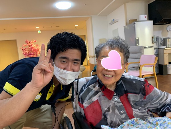 最近、パーマをかけたご入居者様と写真を撮りたいと言っています。