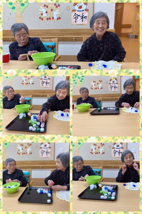 レクリエーションなどで使用するペットボトルの蓋を洗い拭いてくださりました!