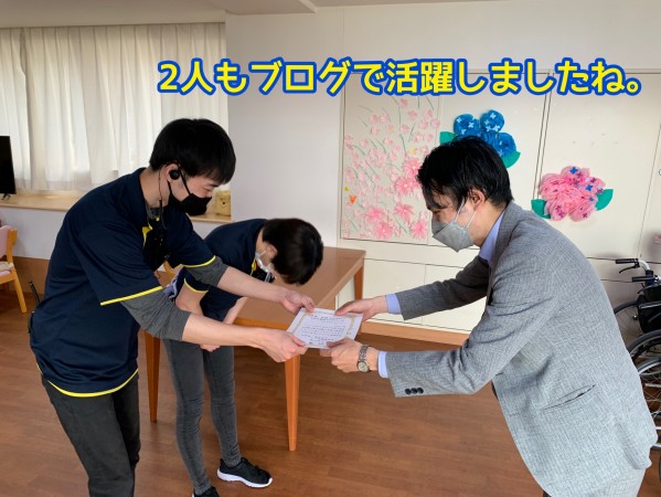 4月の介護ブログ、トップアクセス賞の表彰状授与でございます。