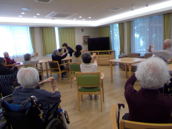 毎日午前・午後共に体操をしていますが、この前はスタッフが独自に考えた体操を組み入れてくれました。