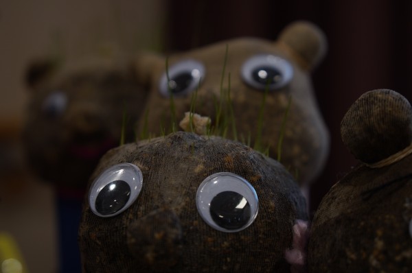 芝人形に毛が生えてきました。