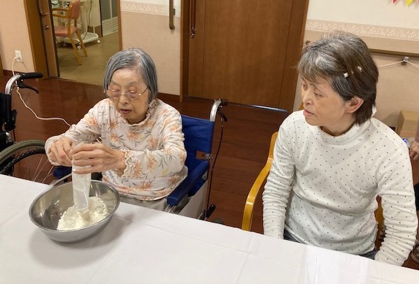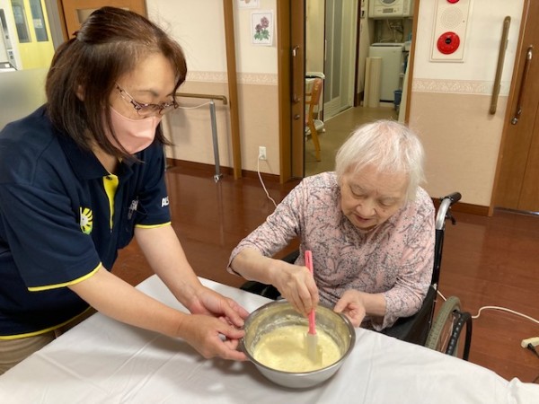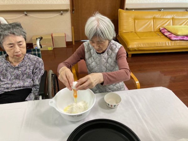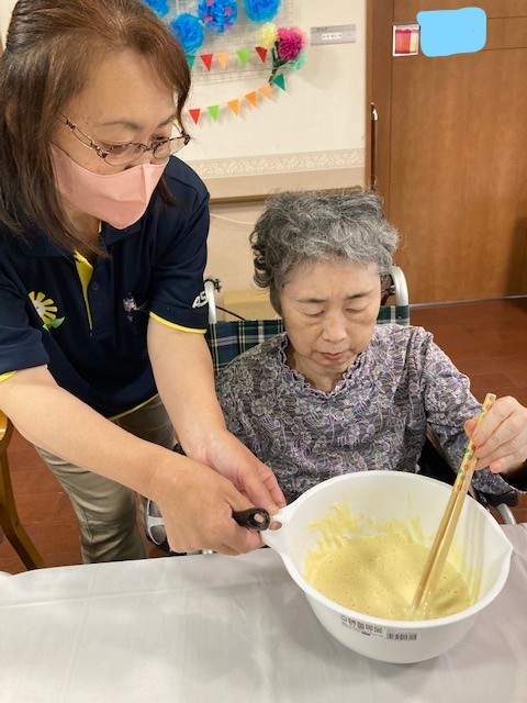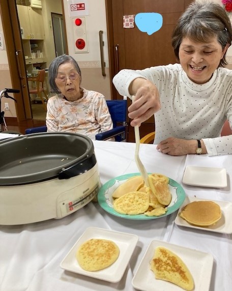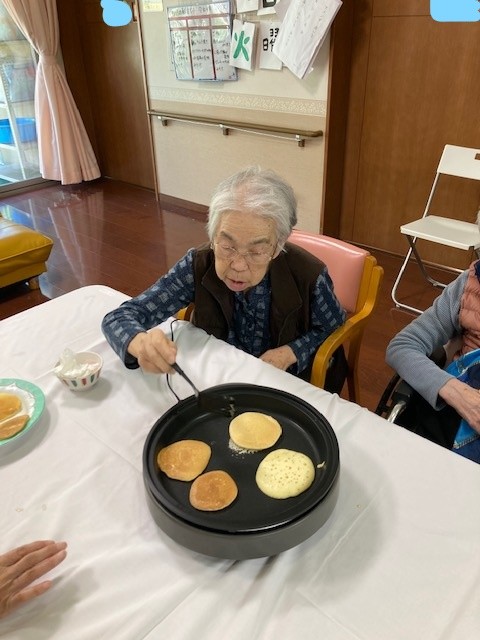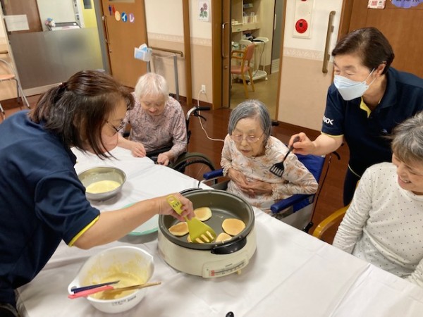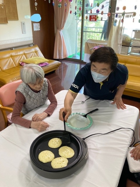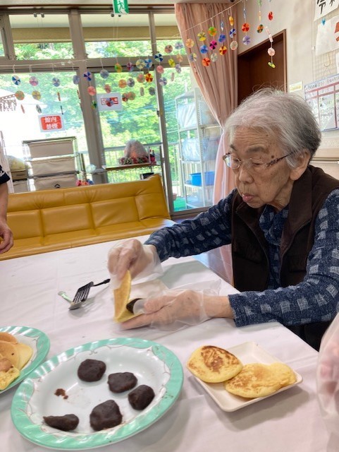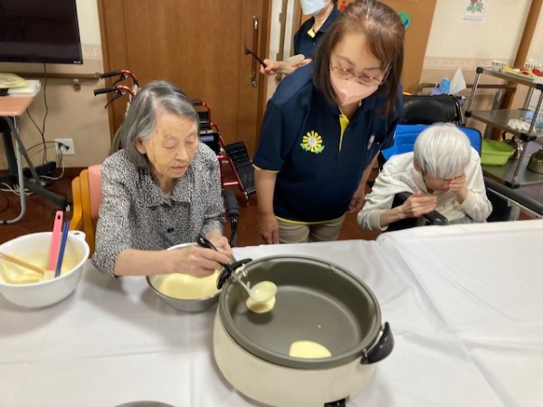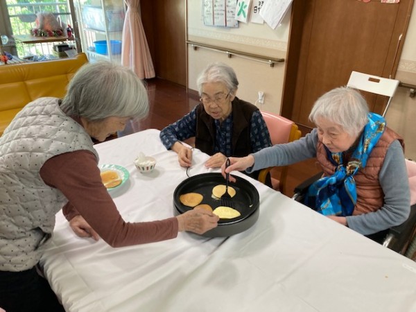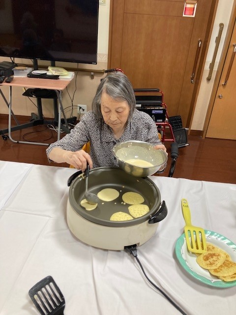 レクリエーションとしてホットケーキミックスを使用してのどら焼きづくりを行いました。
