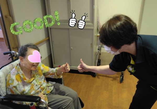 最後に、ご入居者様と『good!』でシンクロし、またどこかに去って行く…