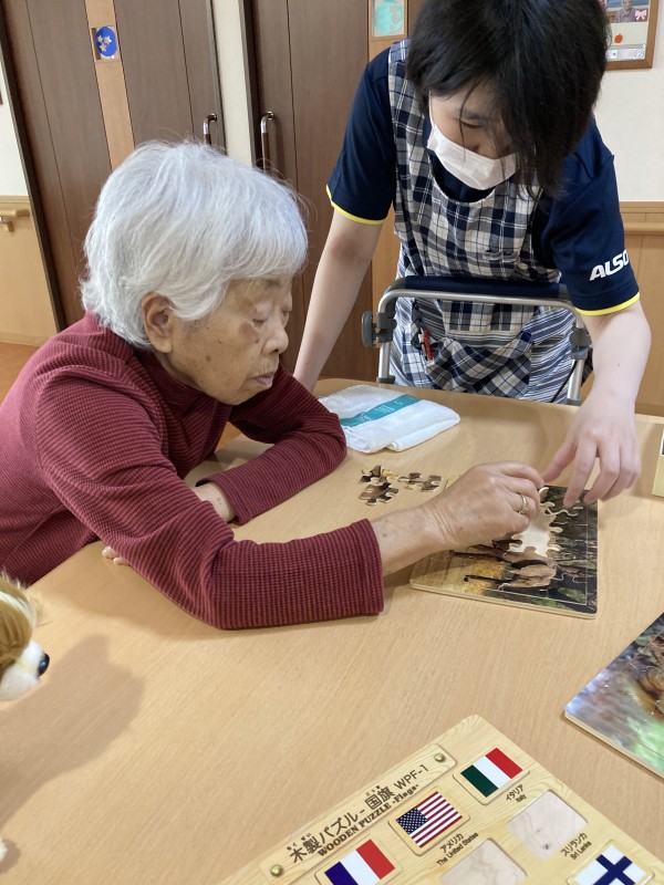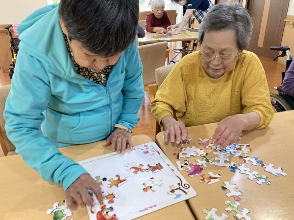 室内ではパズルを!なかなか難しい様子で、苦戦しておられました(;´Д`)脳トレ脳トレ!