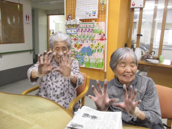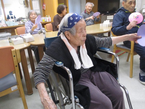 日頃行っている体操の一部「花笠音頭」の様子です。