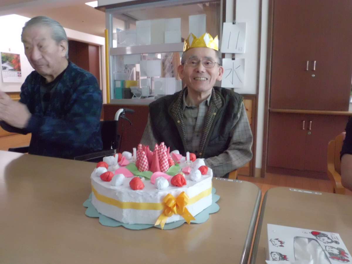 4月のお誕生日のご利用者様は2名。81歳・76歳の男性の方です。一緒に生活されるみなさんから祝福され、少し恥ずかしそうにされていましたが、その後は満面の笑みでみなさんからの歌のプレゼントを喜ばれていました。ハーモニカの得意な本日の主役のご利用者様は、すばらしい音色を響かせ、自らの誕生日に華を添えいました。