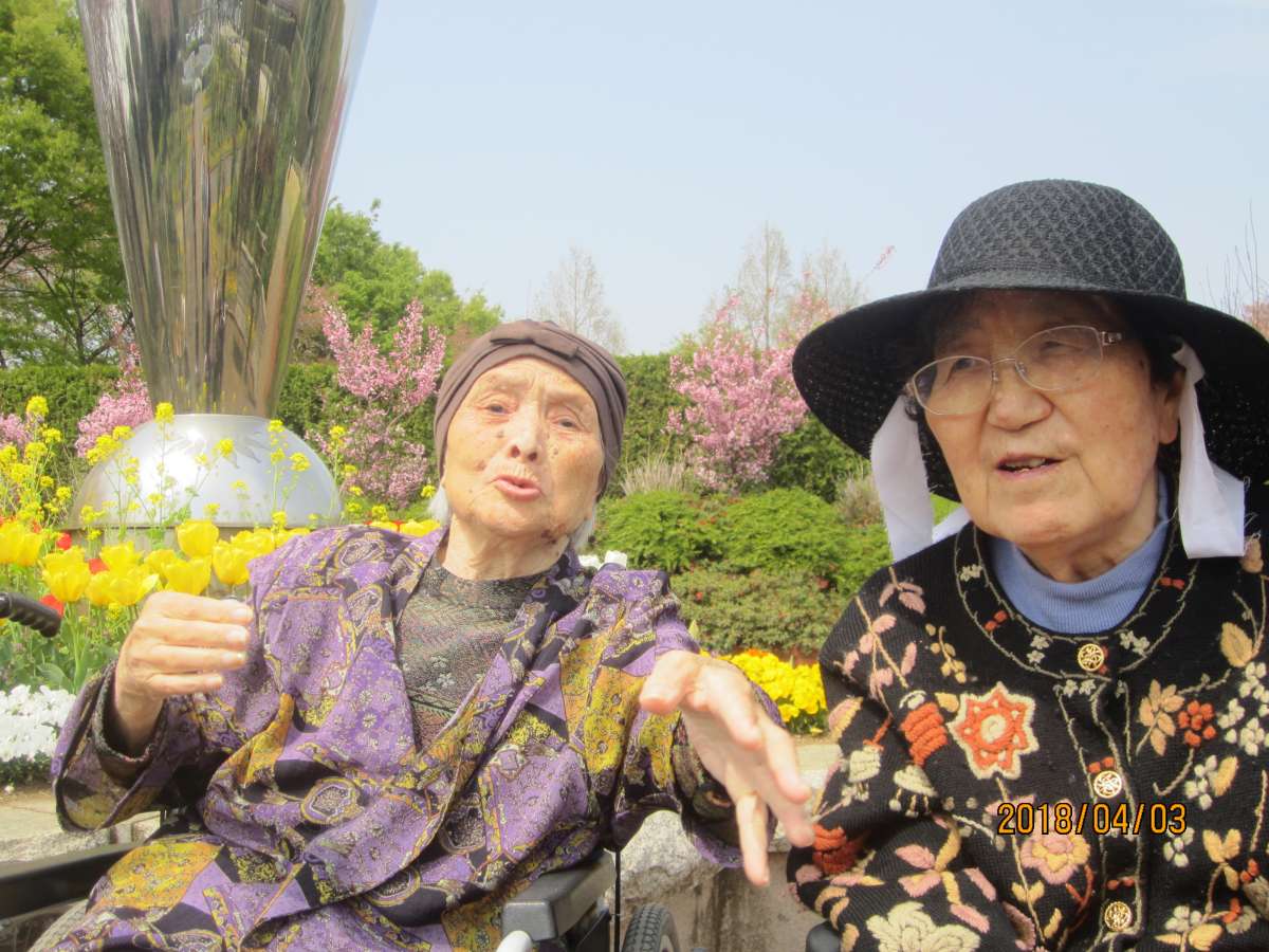こんにちは。介護付湯量老人ホームみんなの家・三橋6丁目では『お花見 第2弾!』として3Fご利用者様と『大宮花の丘』に4月3日に行ってきました!さくらは3分咲きでしたが(^_^;)ほかのお花がきれいに咲いてました✾青空の下みんなでお弁当をおいしくいただきました♡