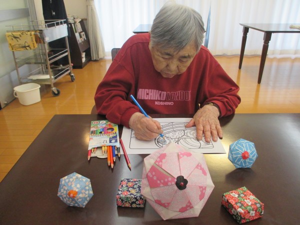 今日は午後に塗り絵を行いました(^_-)-☆ケアマネHさんが中心となって皆さんで行いました。
