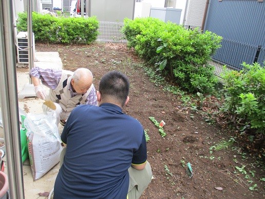M様ご夫婦揃って畑で草取りとラディッシュが双葉が開いたので間引きをして下さいました(*^^*)
