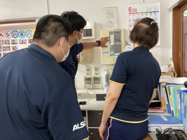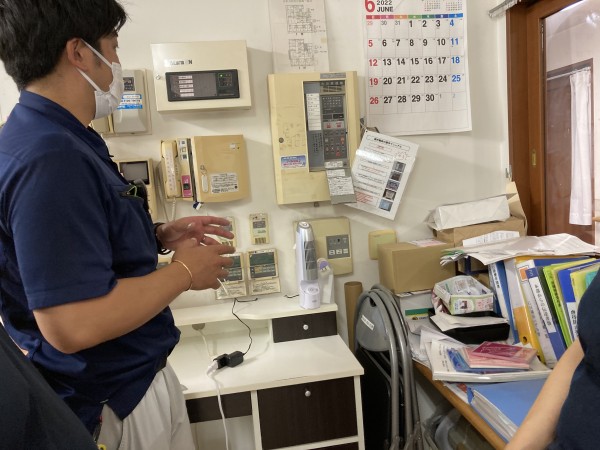消防点検の職員から少し突っ込んだ細かい火災報知器の受信機の使い方、スプリンクラー等の説明を受けました。