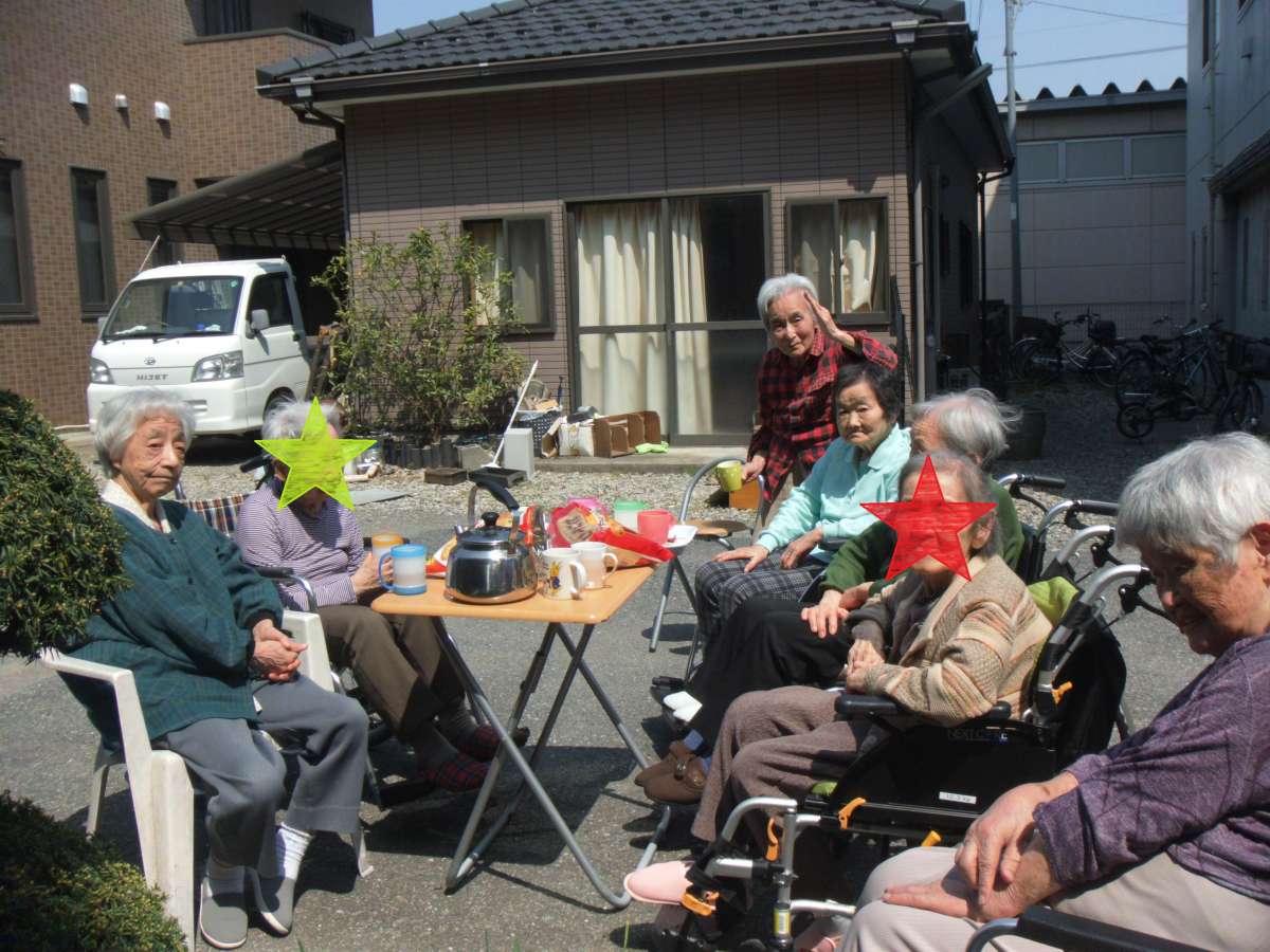 別の日には、ホームの前で外気浴をしましたぁ~。