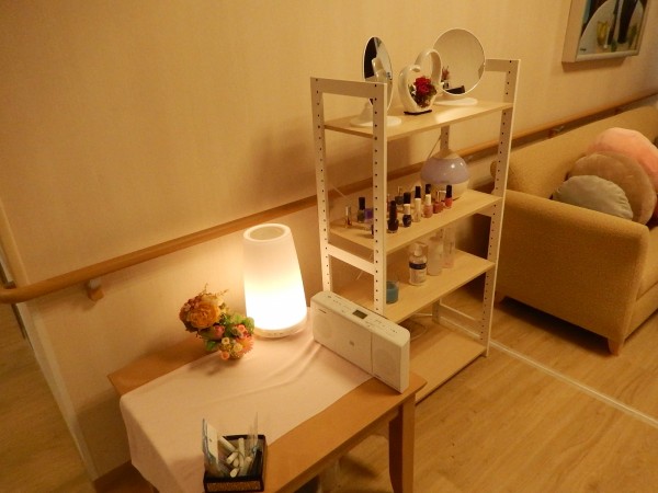 当施設、ネイリストのツートップ(^^)vで可愛らしいお花やおしゃれ照明等をベストポジションに配置していきます(#^^#)