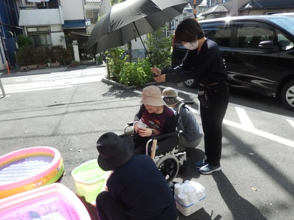 暖かな陽気のなか、ご利用者の皆さんと“足水テラス”の事前準備をしていただきました!