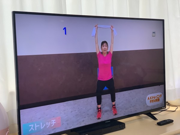 ALSOK介護株式会社ではYouTubeも活用して、いつでも運動トレーナーと一緒にタオル体操やさまざまな運動コンテンツが出来るようになっております。