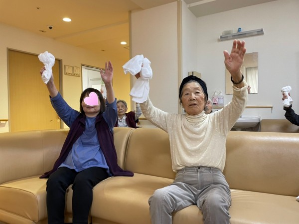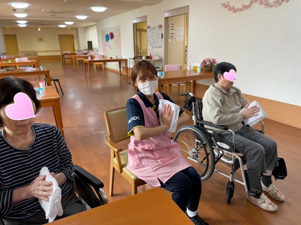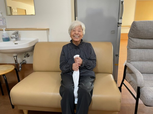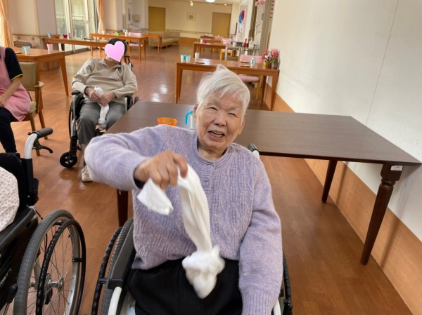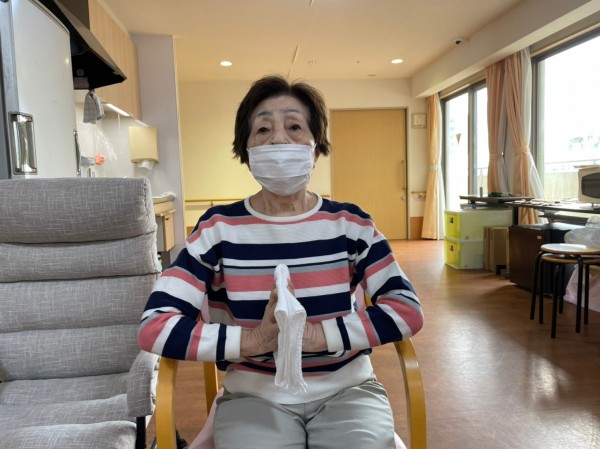 このご入居者様は、ALSOK介護株式会社の『タオル体操』のチラシのモデルになっていらっしゃいます。