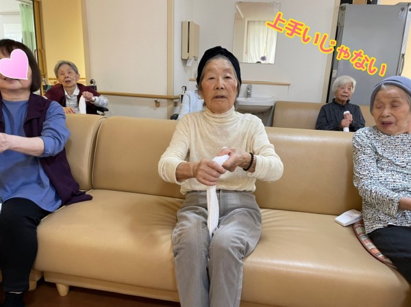笑顔が可愛い及川ナースも、ご入居者様と一緒に参加です。