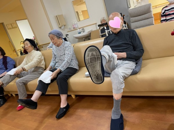 いつも、居眠りしがちなご入居者様も、こんなに足が上がっちゃいます。