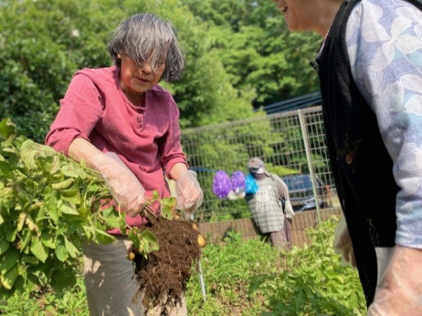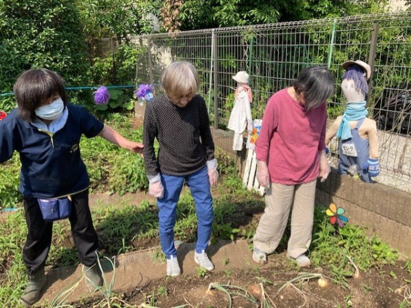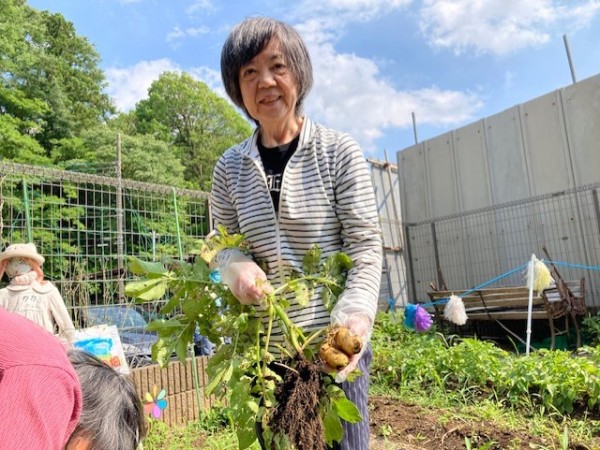 4月に芽が出てきたジャガイモと玉ねぎを収穫する日がやっと来ました!!