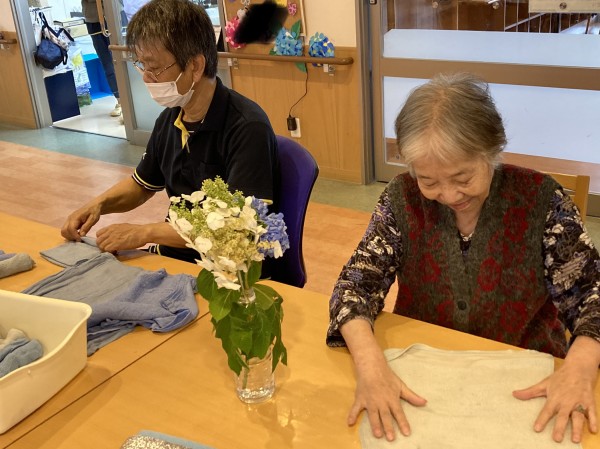 職員と一緒にタオルを丸めてくれる熱心な姿がとてもいいです★★