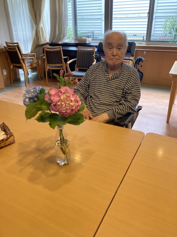 アジサイと一緒にいい笑顔が映えます(^^)/
