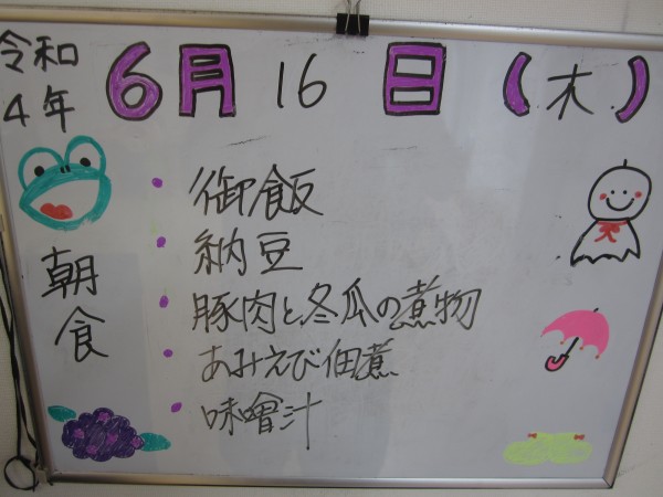 ★☆介護付有料老人ホームみんな家三橋6丁目の朝食令和4年6月16日(木)曜日