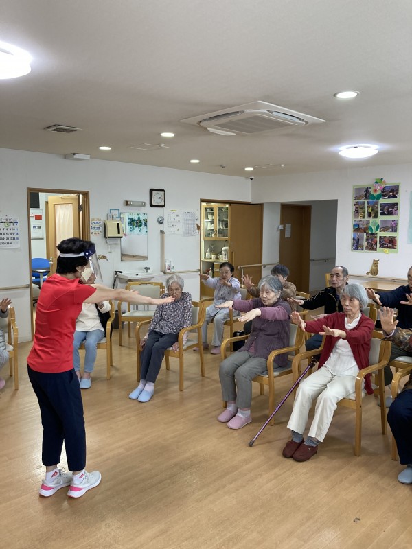 先日、運動指導員の岡庭先生と「いきいきリズム体操」を行いました。