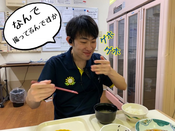 ご入居者様じゃなくて、食べるだけの僕を撮ってもしょうがないでしょう。