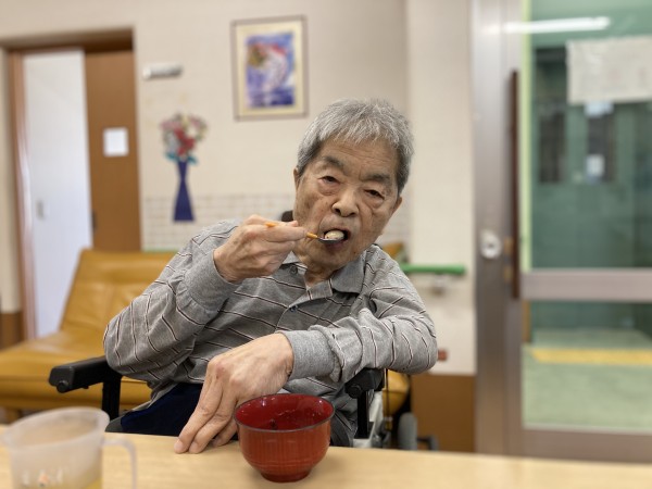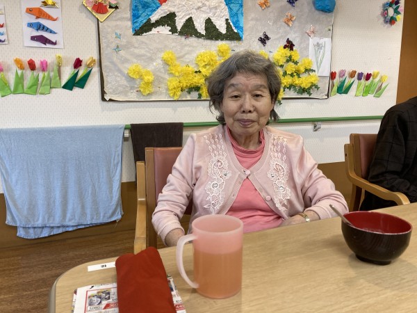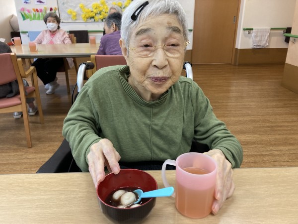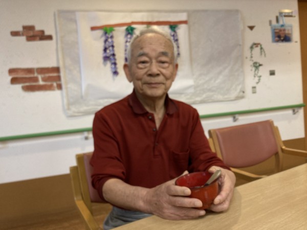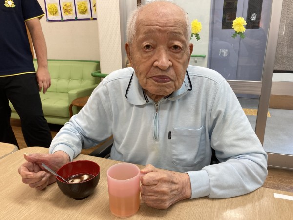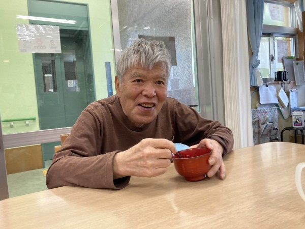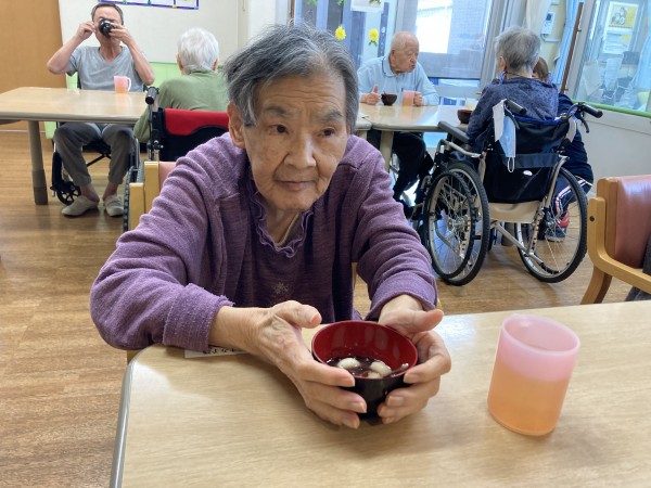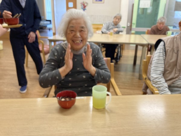 「今日のおやつは、皆様の大好きな、ぜんざいですよ~❤」と声掛けすると