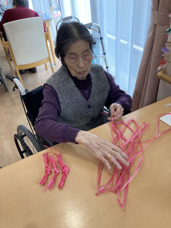 赤い紐を綺麗に纏めて