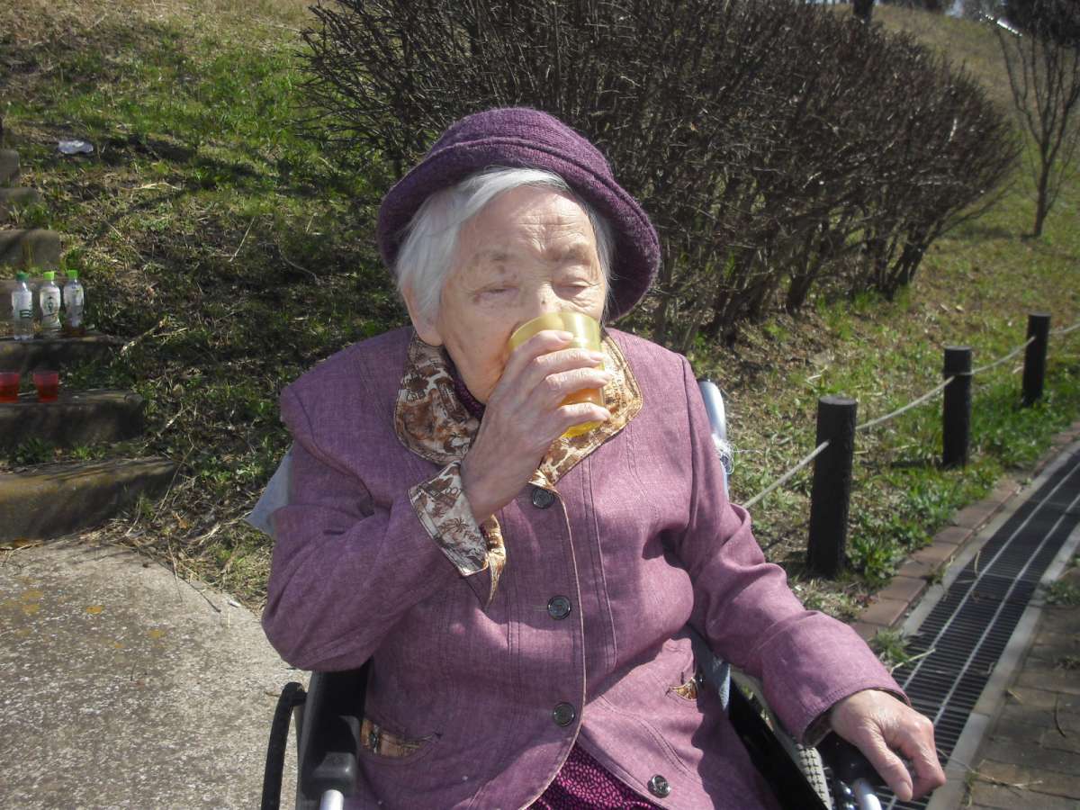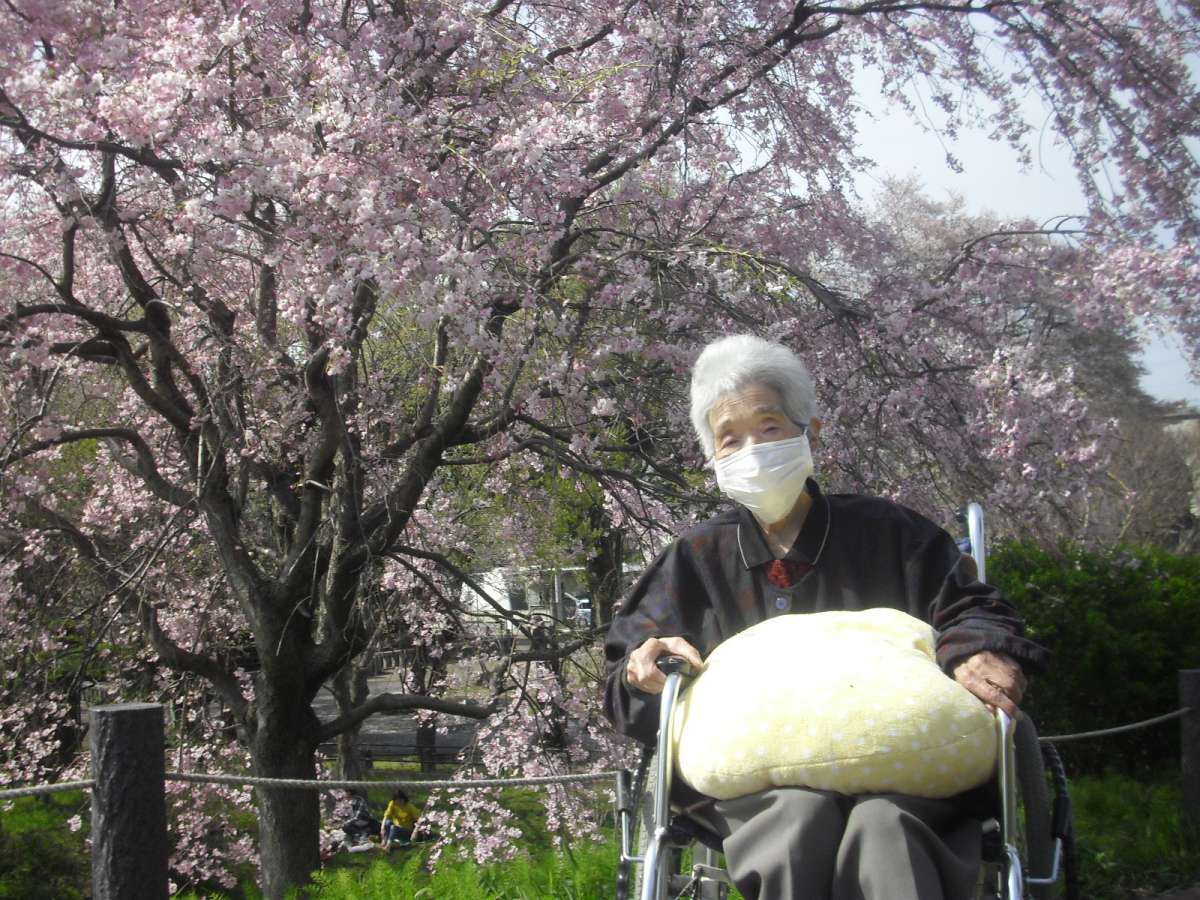 春日和の暖かい日に、ご利用者様と近隣の八幡神社へお花見に行きました。