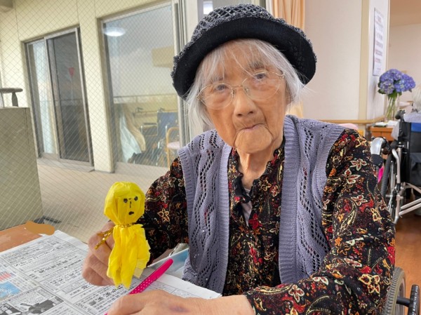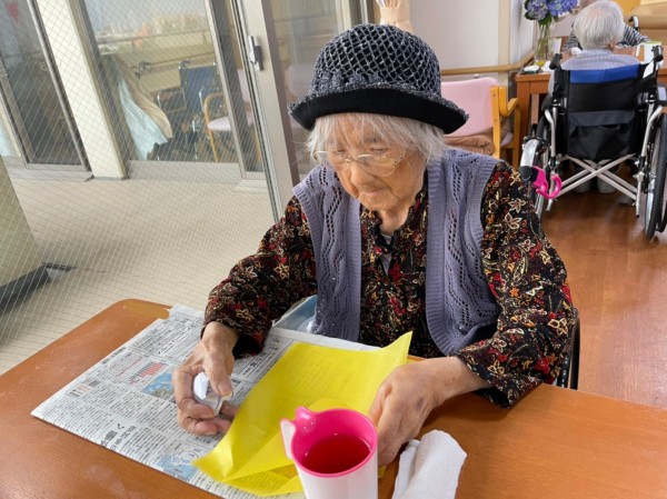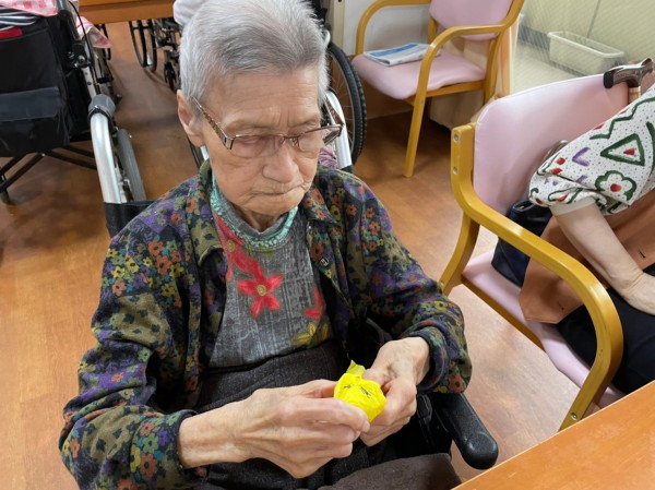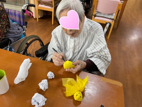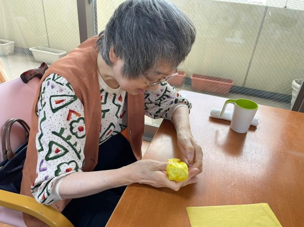 お花紙に包んで作るカラフルな、てるてる坊主。