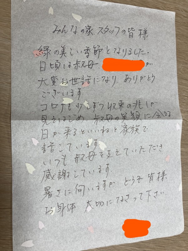スタッフにも心温まる手紙を一緒に同封してあり、感謝の言葉もいただきました。