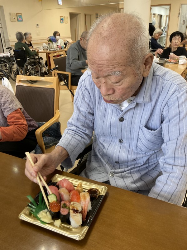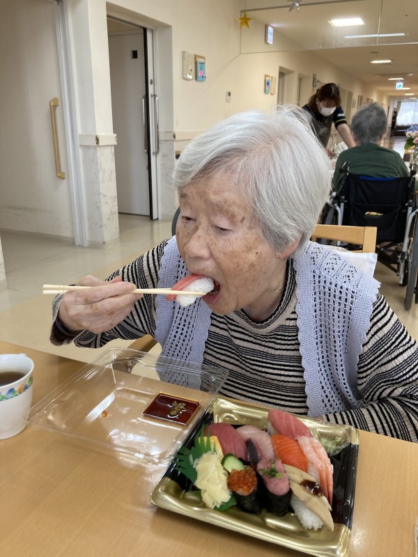 ご利用者様に何が食べたいかお聞きしたところ、「お寿司かな?」とのご意見が多数いらっしゃいました。