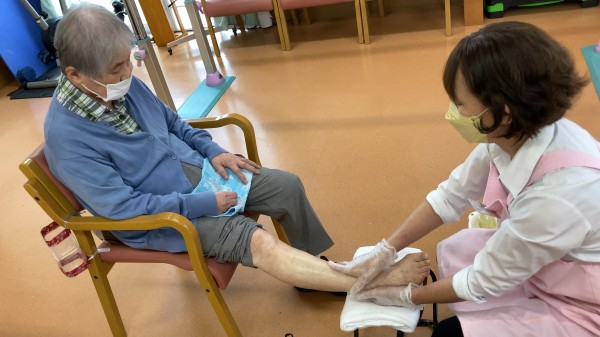足のむくみと疲れを、セラピストの方がしっかりと施術しております。やはりこうしたマッサージを受けるだけでも、健康にはとてもいいですからね♪