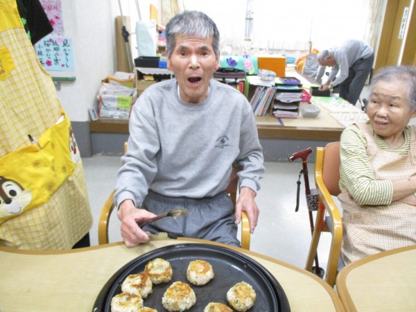 皆様に手伝って頂き、焼きおにぎりを作ってみました!