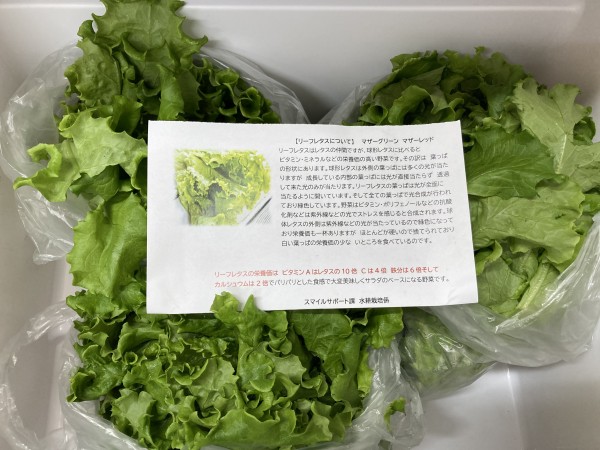 スマイルサポート課 水耕栽培で作られたリーフレタスが届きました!お夕食にご提供いたしました(´~`)モグモグ♡