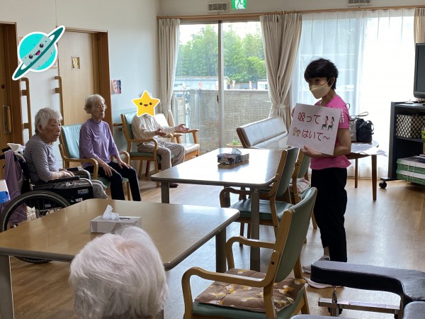 体操の後は、ヨガで呼吸を整え心身をほぐします。