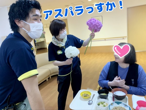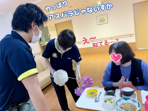 花より団子、アナベルよりアスパラの門田ケアスタッフ(^^)