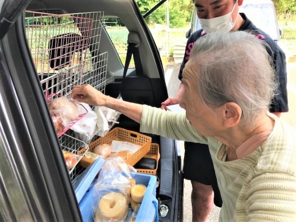 コロナ禍で、移動パン屋さんの買い物も、希望を伺って職員が購入していましたが、久しぶりに皆様の目で見てパンを選んで頂きました。